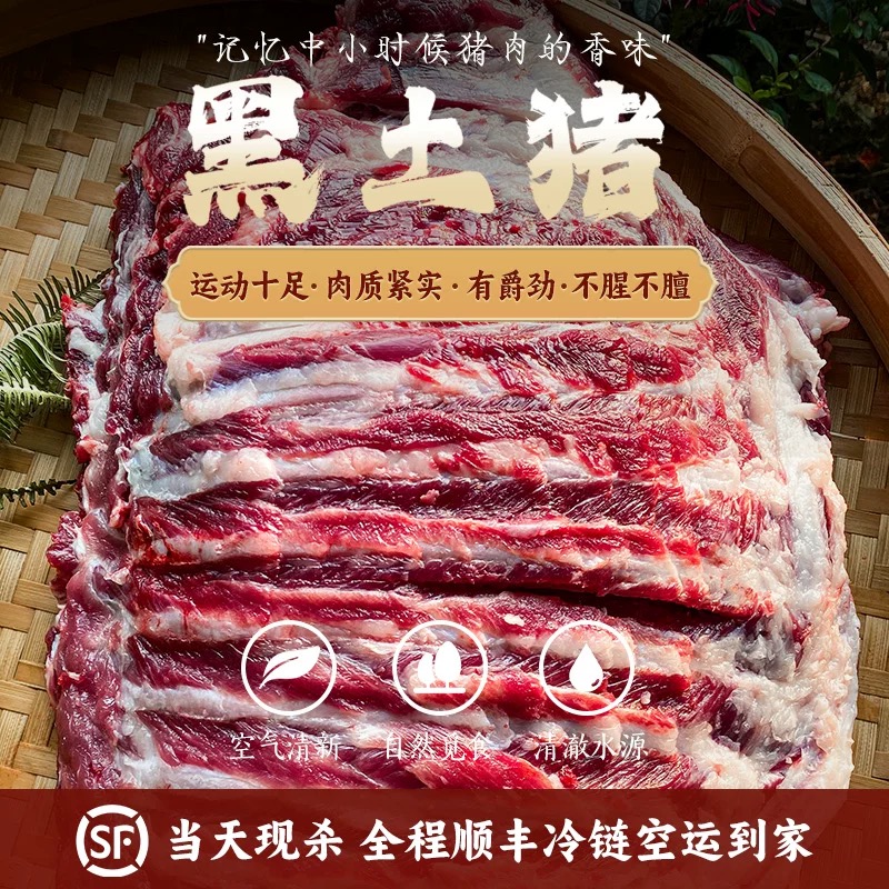 【顺丰包邮】10斤 农家散养黑土猪肉 d